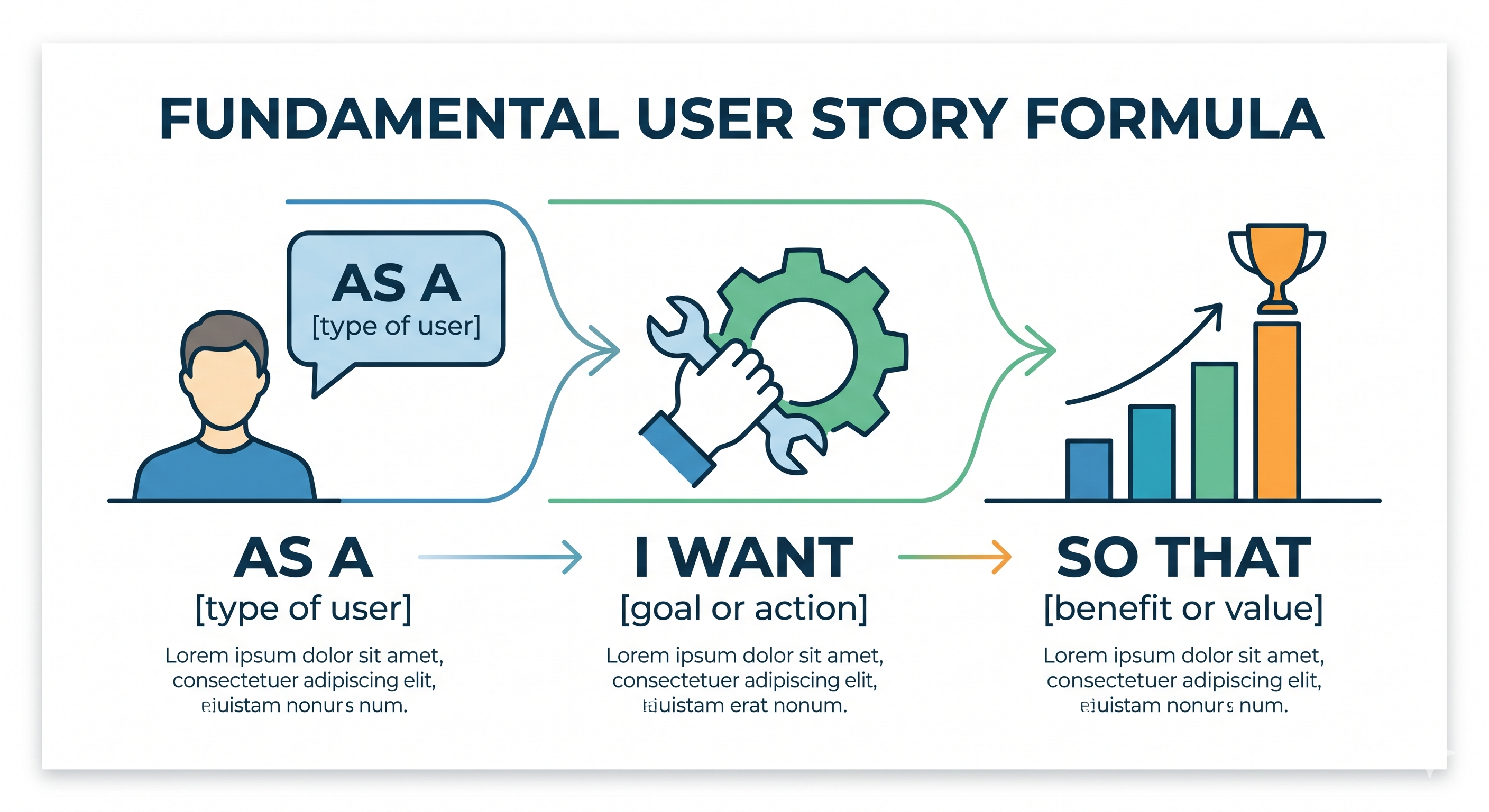 (A clear infographic illustrating the three segments of the standard user story formula.)